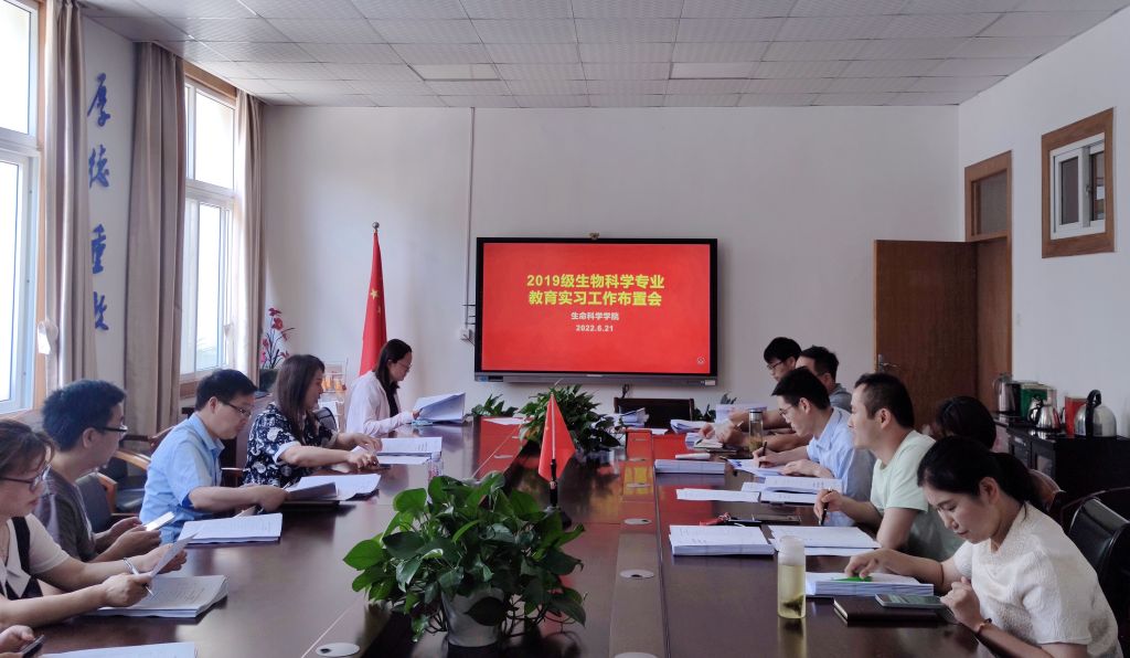 本网讯(生科院 韩菲)根据生物科学(师范)专业教学计划,2019级本科教育实习近期将全面展开。为高质量开展好教育实习,6月21日下午,生物科学专业全体实习指导教师和2019级辅导员老师在生科院第一会议室召开了教育实习工作布置会。会议由生物科学专业负责人杨安娜主持。