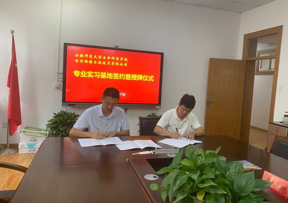9月7日下午,南京瑞源生物技术有限公司总经理朱也来到生科院,就专业实习基地、校企合作等事项进行洽谈,并签署了专业实习协议。签约仪式在赭山校区生化楼第一会议室举行,党委书记蒋学波、副院长陈冬生、王鹏,生物技术专业负责人王旭以及何锋老师出席本次签约仪式。