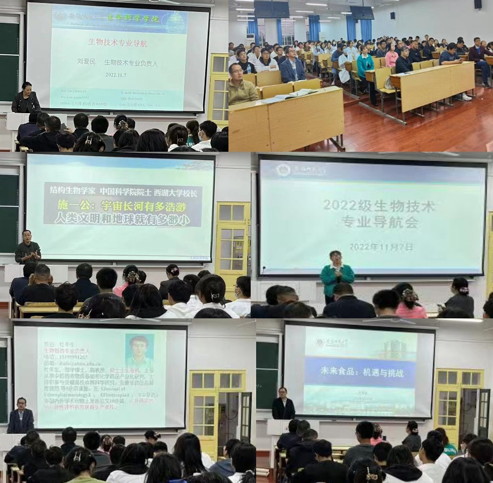 会议中,陈冬生强调了拓展格局、树立目标的重要性,解析了实现目标的路径和方法,阐述了“路虽远,行则将至;事虽难,做则必成”的深刻道理。刘爱民详述了生物技术的专业优势和发展前景,解答了同学们的相关问题;杜冬生、汪昌保、张晓平等老师对生物制药、食品安全、园艺等专业方向进行了详细介绍,参会老师王旭、陈绍兴、陈进民、沈小鹏、刘小锦、杭华、朱波、刘洪明、马晓艳、孙柯、卢存龙、程启鹏、胡荣康分别结合自己的亲身经历,鼓励学生找准定位和目标方向,从小我到大我,为国家发展做贡献,老师们共同表达了对同学们的殷切期望。