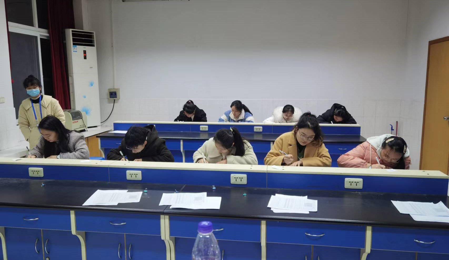 本次教资面试测试场所设在赭山校区生化楼,共设置1个候考室、1个抽签室、1个抽题与备课室和6个面试室(含1个线上面试室)。教师资格面试的基本流程为:在志愿者的引导下,考生依次进入候考室报到、抽签室抽取试题签号、抽题与备课室备课20分钟、面试室15分钟讲课(演示)与5分钟答辩。本次学院面试考核分为两个时段:下午12:30至17:30,晚上18:10至21:10。各部门人员按时到岗,考生按时入场,考试流程井然有序,考官认真负责,考务细致周到,面试考核工作圆满完成。