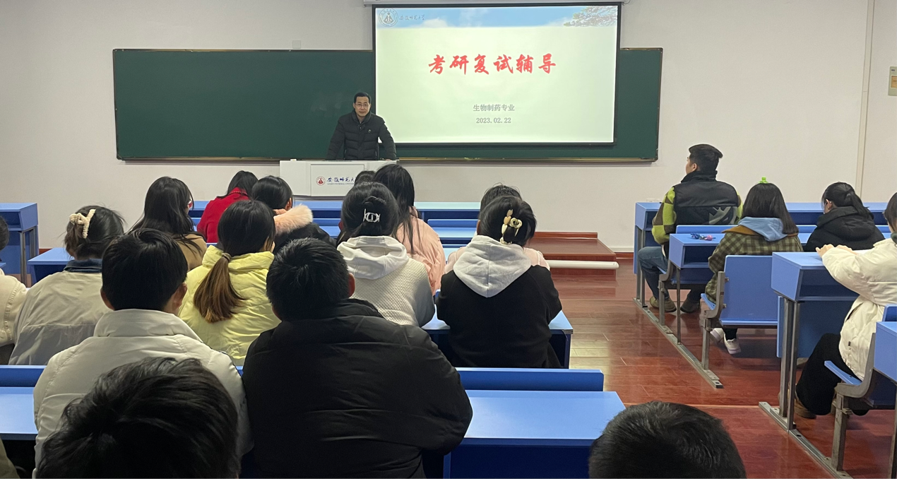 本讯网(生科院 汪士琪 潘如如)近日,全国各高校的硕士研究生笔试成绩陆续公布。为助力考研学子面对即将到来的研究生复试,2月22日下午,生物制药专业在教学楼1101教室召开了2019级考研复试辅导交流会。专业负责人陈冬生教授应邀出席本次活动,会议由辅导员魏泽坤主持。