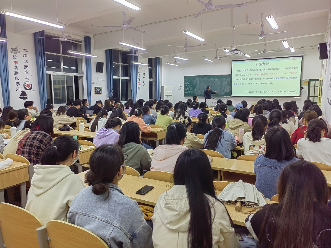 为贯彻落实安徽师范大学基础教育振兴行动,进一步提升师范生培养质量,解答同学们关于暑期小学期的疑惑,5月11日晚,学院教学副院长陈冬生在赭山校区教学楼1503教室开展了师范专业暑期小学期工作实施方案解读会,2020级生物科学(师范)专业全体同学参加了本次会议。
