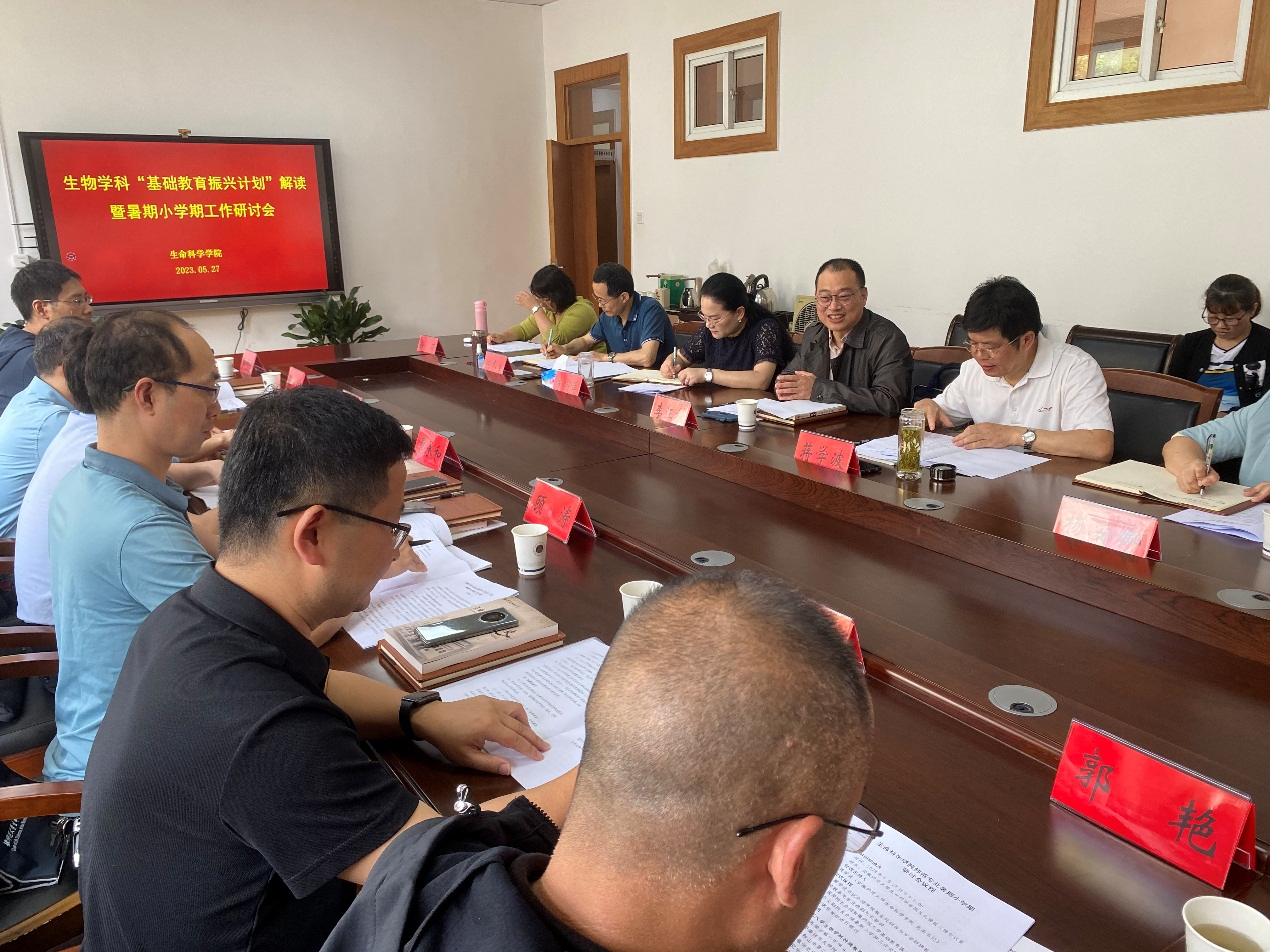 为推动bwin必赢线路检测“基础教育振兴行动计划”,扎实开展好暑期小学期工作,打造金牌师范生,同时向遴选出的安徽省中学一线名师解读bwin必赢线路检测基础教育振兴行动计划,5月27日下午,学院举行了生物学科“基础教育振兴行动计划”解读暨暑期小学期工作研讨会,10位中学一线名师、校教务处副处长李汪根、生科院党委书记蒋学波、院长朱国萍、副院长陈冬生、师范专业负责人杨安娜、生物教学论教研室主任韩菲、师范专业卓越班负责人姜斌等参加了本次会议。