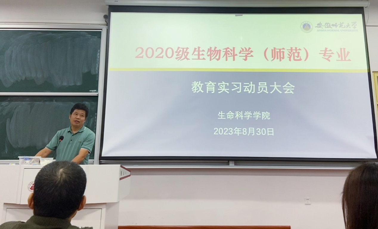 蒋学波对2020级生物(师范)专业教育实习工作进行了动员并提出要求。他指出,教育实习是培养教师职业素养的重要途径,是教师专业发展的必由之路,激励同学们要秉承着严谨治学、耐心教学、因材施教的教学理念,学习中学教师的优秀教学品质,在实习中提高、完善自己,为日后工作打好基础。