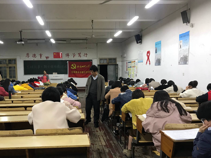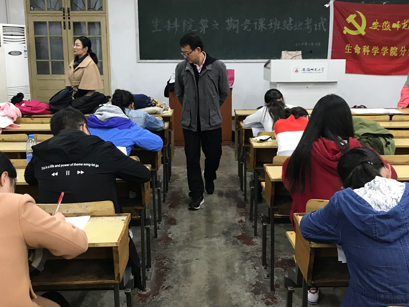 本网讯(夏月琴)11月14日晚,学院分党校第6期党员培训班在教学楼1401教室举行了结业考试。考试期间,学院分党校校长、党委书记蒋学波,分党校副校长、党委副书记刘振杰莅临巡考。