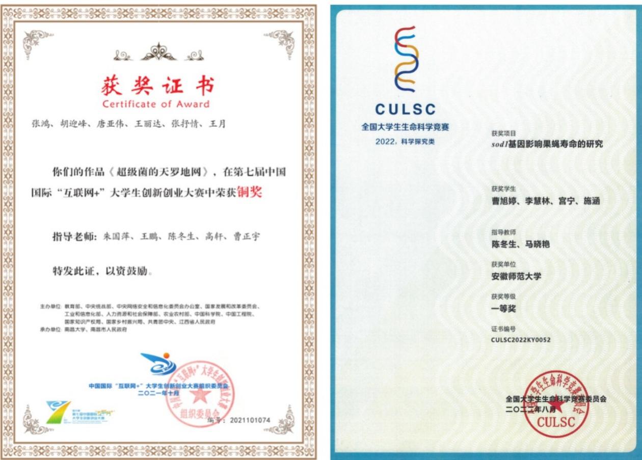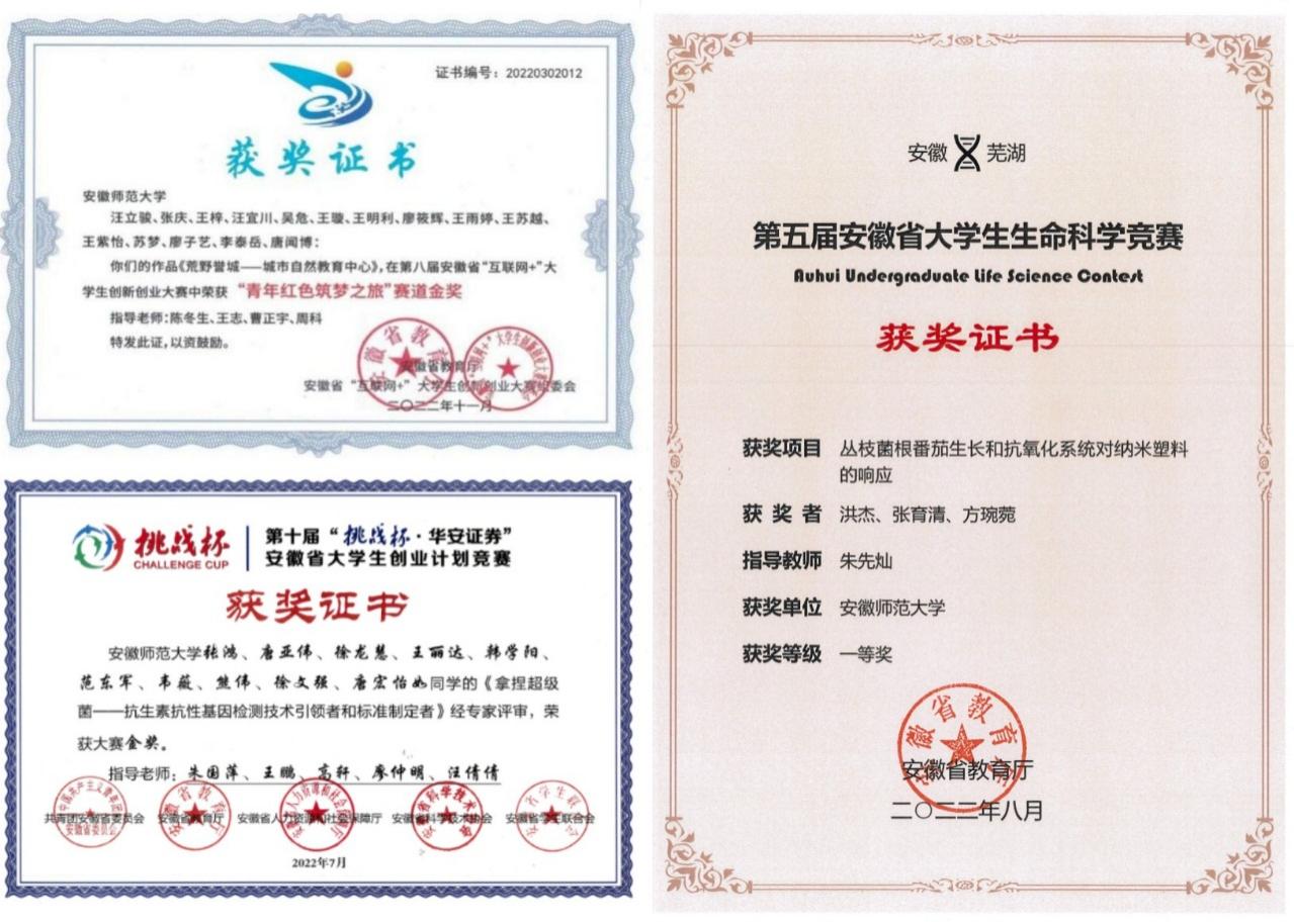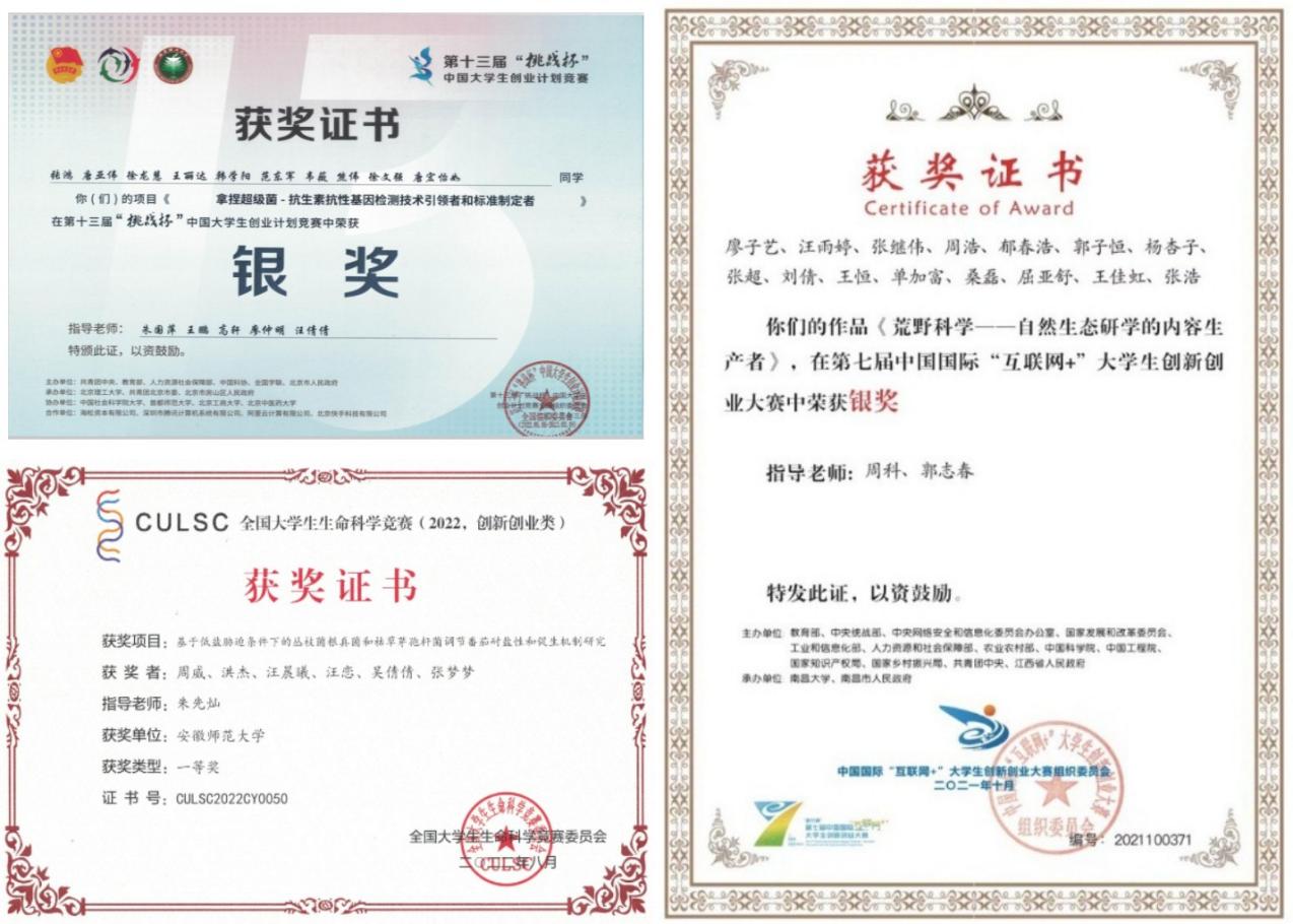 坚持以课程改革为先导,四个课堂联动,重视各类竞赛,强化学生的创新意识、实践锻炼和团队合作精神,现已形成有梯度、有层次的训练和参赛机制,连续多年在全国“互联网+”大学生创新创业大赛、“挑战杯”中国大学生创业计划竞赛、全国大学生生命科学竞赛、安徽省生物标本大赛等各类大赛中斩获佳绩。近三年生物制药专业学生获得国家级和省级以上各类奖项40余项。