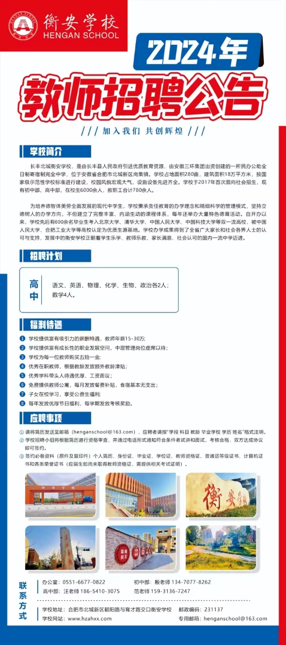 合肥衡安学校2024年教师招聘公告