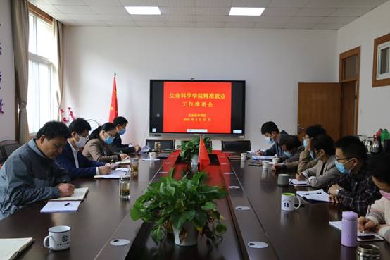 本网讯(生科院 何馗馗 王志) 为进一步做好2020届毕业生就业工作,4月27日下午,76net必赢线路检测中心召开2020届精准就业工作推进会。院党委书记蒋学波,副书记刘振杰,副院长朱国萍、胡好远、王立龙出席会议,各专业负责人、毕业班辅导员参加会议。