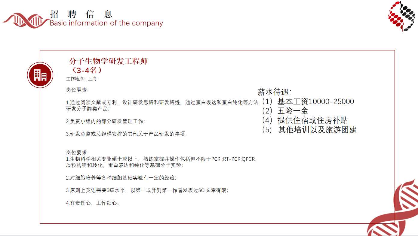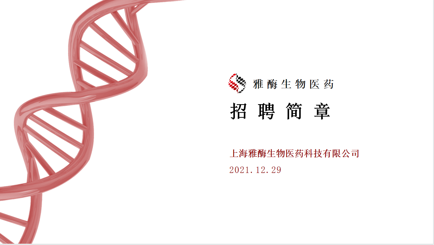 上海雅酶生物医药科技有限公司招聘简章