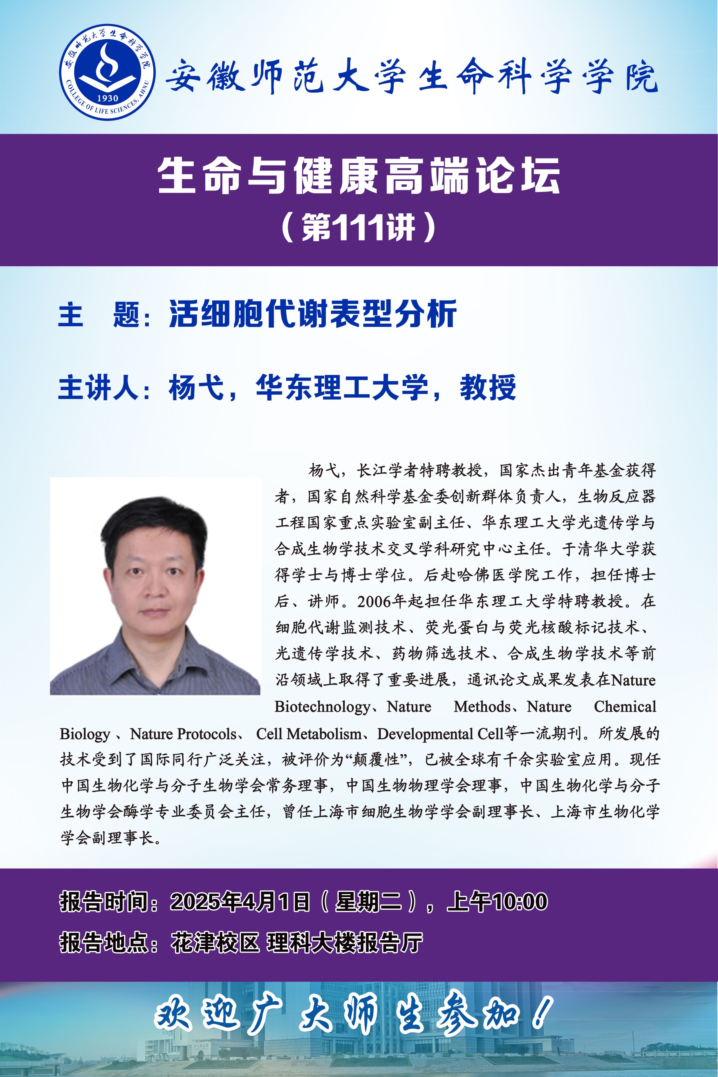 【学术预告】生命与健康高端论坛第111讲:活细胞代谢表型分析