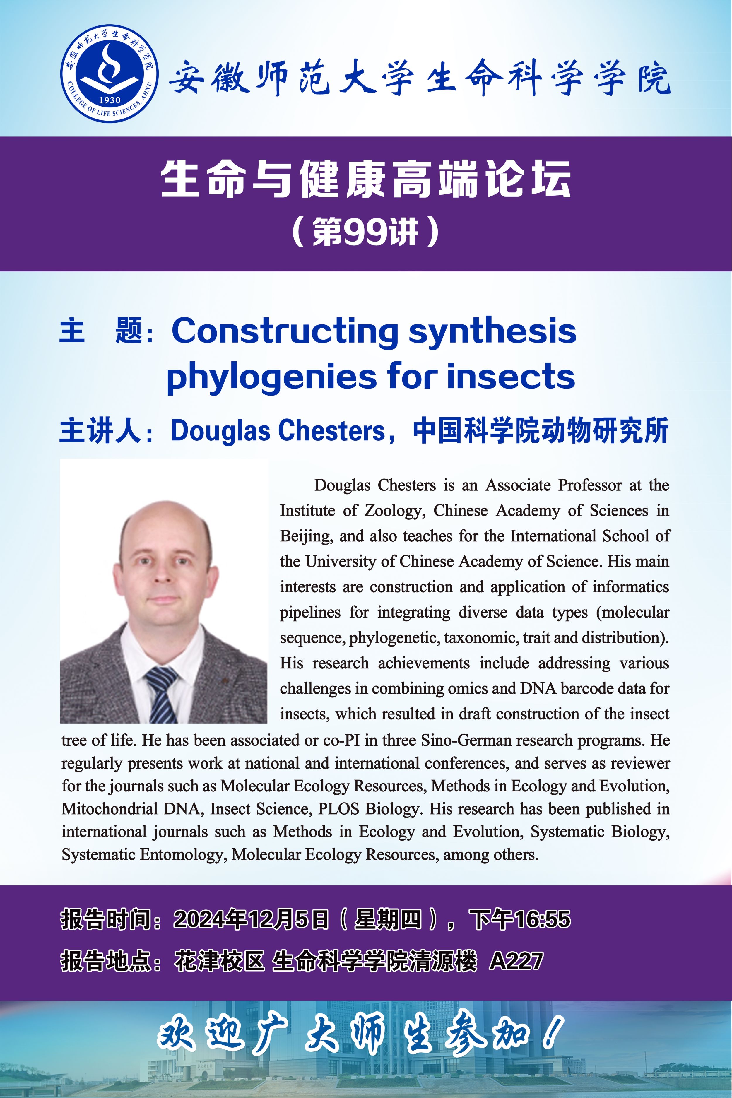 【学术预告】生命与健康高端论坛第99讲:Constructing synthesis phylogenies for insects