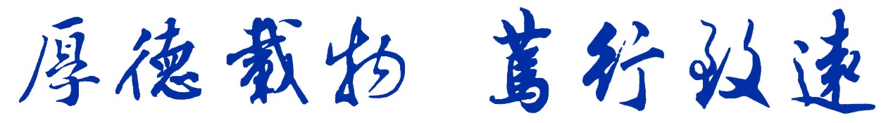 厚德载物,语出《周易·坤卦》。旨在勉励师生以深厚的德行承载万物,修身养性,博采众长,方能成就至善至美之品格,担当家国天下之重任。笃行致远,语出《礼记·中庸》。意在倡导师生以专注的践行抵达远方,知行合一,自强不息,在身体力行中锤炼真知,于持之以恒中实现远大理想。院训为郭沫若字体。